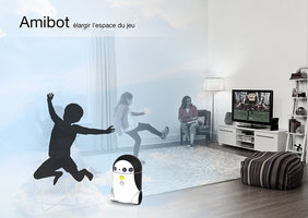 La captation des mouvements des joueurs et leur compre?hension par la machine ont ouvert de nouvelles latitudes aux jeux de consoles. Une seule contrainte : rester dans le champ de vision du capteur. C'est pour s'en libe?rer que nous avons pense? Amibot, un robot qui embarque avec lui la capacite? de Kinect et peut se de?placer dans la pie?ce. Il analyse son environnement et agit en collaboration avec la console pour de nouvelles expe?riences de jeux en trois dimensions et ce, dans tout l'espace de la maison.