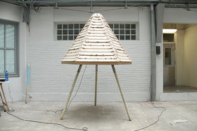 Plic ploc est un dispositif interactif réalisé en 1 mois. Il est composé de plus de 1800 lattes de bois animées par 18 moteurs réagissant à la présence d'un visiteur.