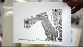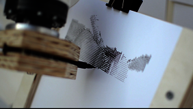 Ce projet est une installation scénographique pour l'exposition Futur en Seine de Juin 2013. Nous avons créé un programme Kinect de captation d'image, dont le graphisme se transformait en fonction des plusieurs facteurs (luminosité et contraste). Prenez la pose, l'image récupérée était ensuite envoyé au bras du robot qui munit d'un simple feutre reproduisait l'image envoyée.