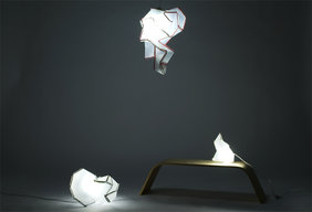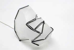 Nous avons finalement décidé de travailler au patronage de feuilles de polypropylène dans l'idée d'explorer des typologies de formes complexes à partir de surfaces développables. La machine permet de découper et poinconner ces feuilles à partir de fichiers numériques. La commande numérique intervient donc dans la conception de ces volumes sophistiqués et leur éventuelle personnalisation.