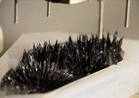 Grow a pour but de permettre au plus grand nombre de prendre part à la création d'un objet. Grâce à Kinect, l'utilisateur modèle son objet à la manière d'un paysage, jouant sur les reliefs et les piques générés lors de ses mouvements. Le robot réinterprète cette esquisse pour en faire une pièce rendu unique par la dichotomie existante entre la précision du robot et l'aléatoire du magnétisme. La matière s'élève dans les airs et génère des arborescences minérales donnant vie à une curiosité issue d'un rapport étroit entre l'humain et la machine.